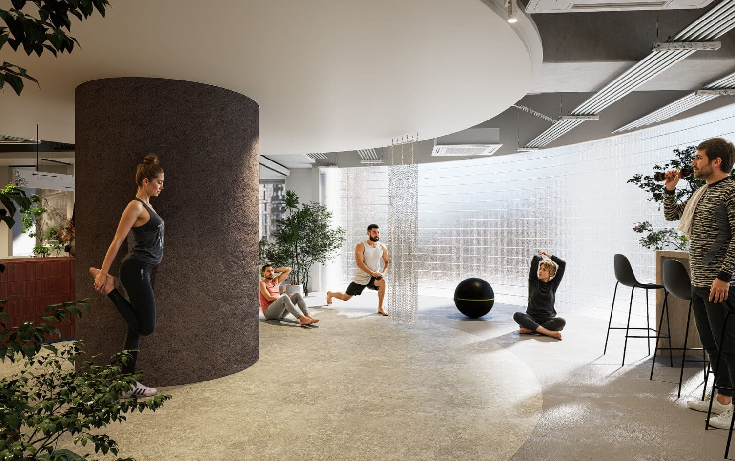 円形エリアで軽いストレッチや運動を取り入れたい企業